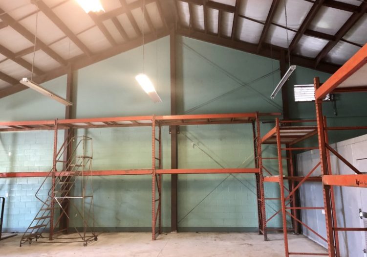 - 18 Ft. Clear Ceiling Height in Warehouse with Metal Roof.